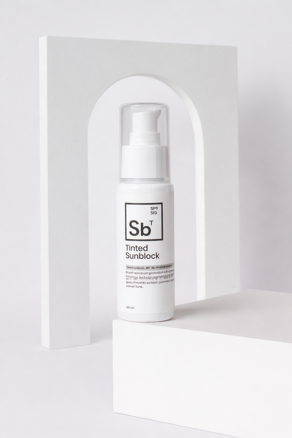 Tinted sunblock, SPF-50, UVA/UVB protection.